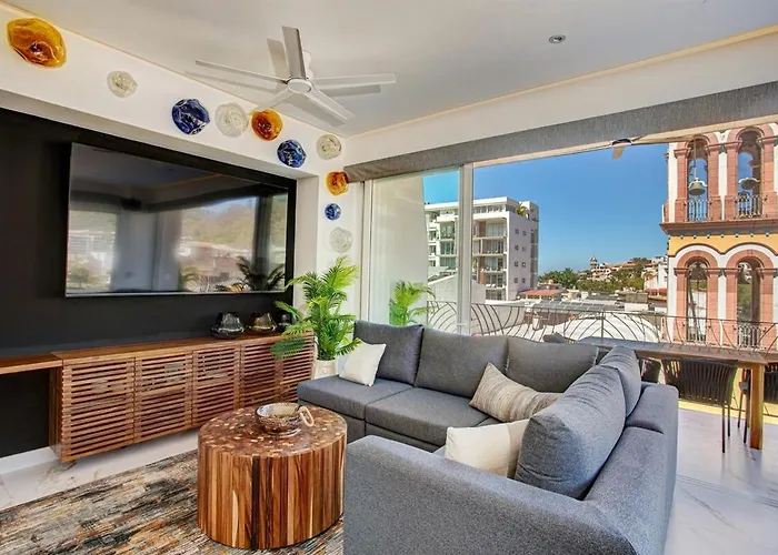 El apartamento Dvine Escape Chic 2Br 2Ba With Rooftop Pool And Oasis Puerto Vallarta, situado en el mismísimo corazón de Puerto Vallarta, se encuentra a 700 metros de la Iglesia de Nuestra Señora de Guadalupe. Este apartamento cuenta con una terraza que da a las montañas.